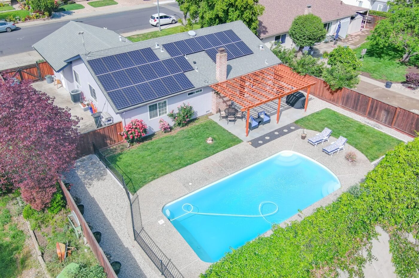 The expansive 8,346 sq. ft. lot offers rare privacy with no rear neighbors. Relax in a resort-style backyard boasting a sparkling pool with new high-efficiency equipment, a covered patio, and a lush lawn. A large paved side yard with double gates provides ideal storage for an RV or boat. Energy-efficient upgrades include dual-pane windows and a newer HVAC system. Located steps from parks and top-rated schools (Livermore High: 8/10), this rare, move-in-ready gem offers the perfect blend of style and convenience.